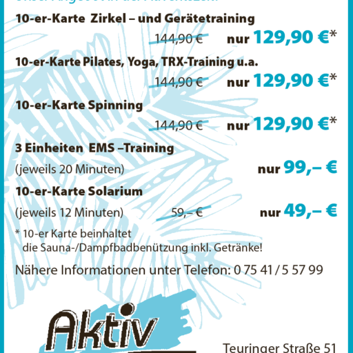 Schenk Gesundheit – Unsere Angebote für dich und deine Liebsten! Verschenke Fitness und Entspannung – oder gönn dir selbst etwas Gutes! Nur im Zeitraum 1.–31.12.2025 verfügbar: 10er Karten für 129,90 € (statt 144,90 €): Kurse – Von Yoga und Pilates bis zu Les Mills Kursen, für jedes Fitnesslevel gee...